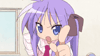 演出:坂本一也/作画監督:坂本一也 食玩のカードの中身について、大体、狙ったものを当てることができるという「泉こなた」。カードにはパターンがあって、それを見極めるらしい。時には、箱ごと買ったりして、お目当てのカードを強引にでもゲットすることも。